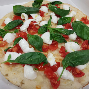 Mozzarella, pomodoro fresco, gamberetti*, zucchine, rucola. Allergeni: Grano, Latte, Crostacei * Prodotti Congelati N.B.: * Alcuni prodotti possono essere congelati all'origine se non reperibili freschi.